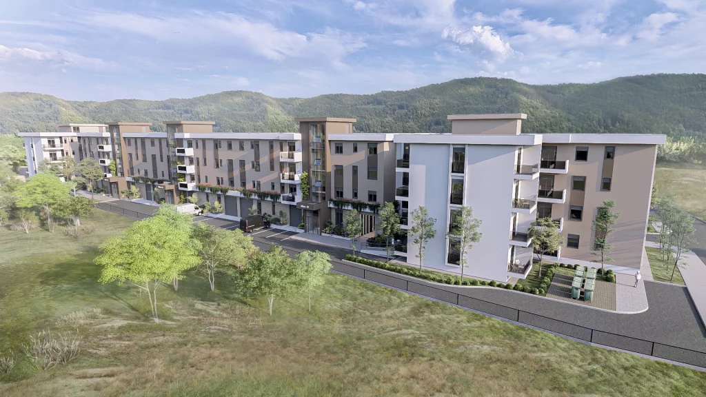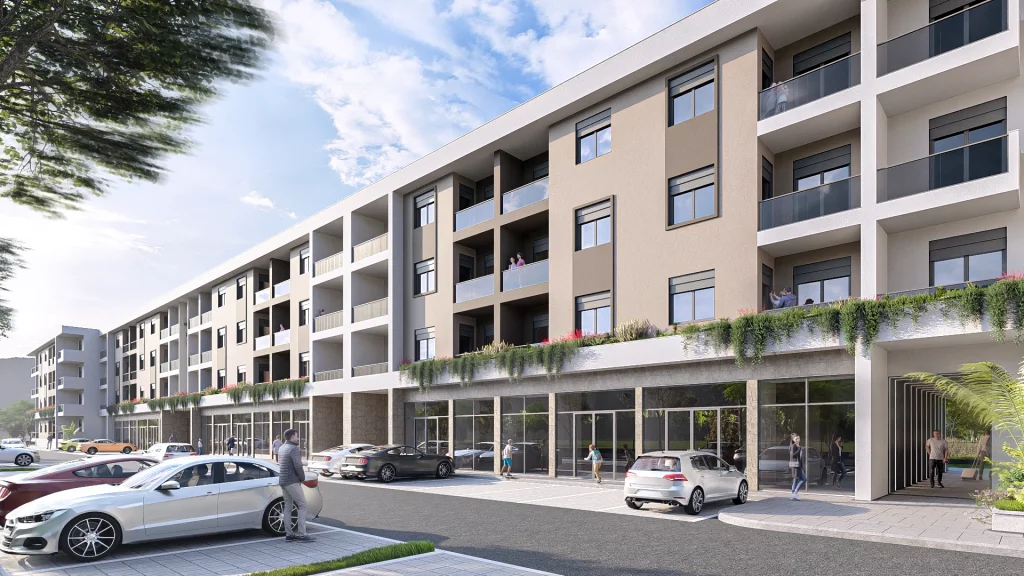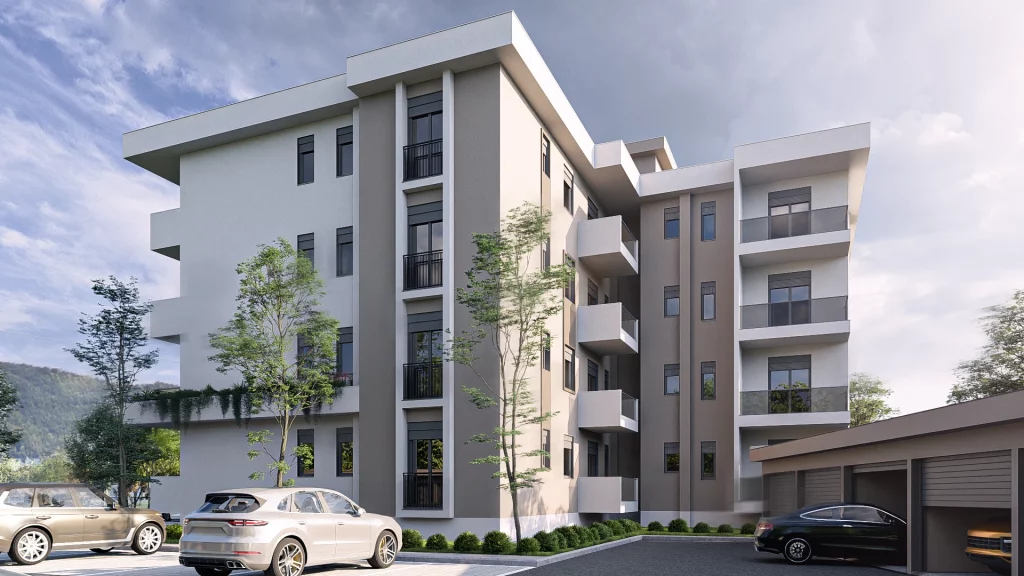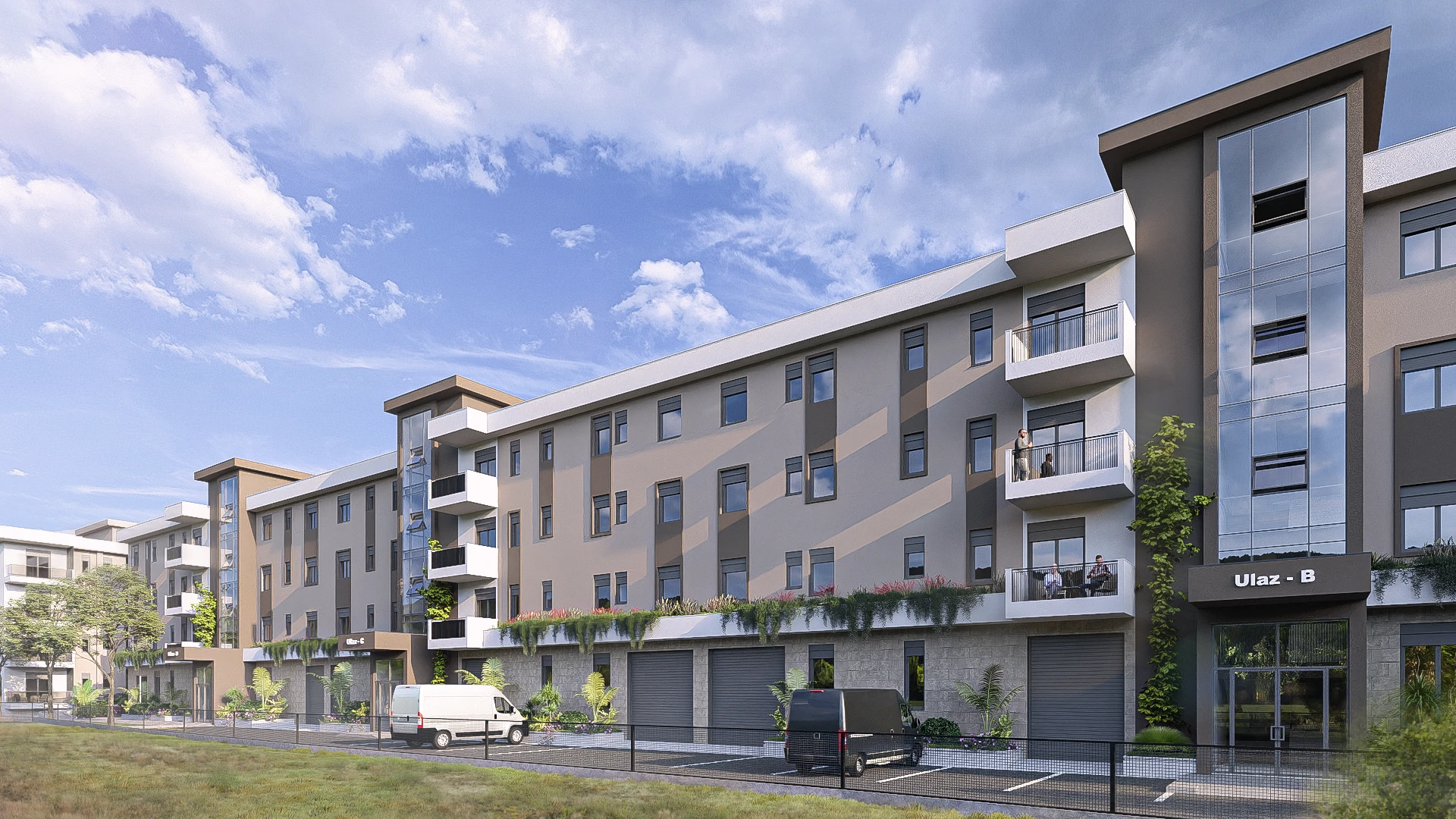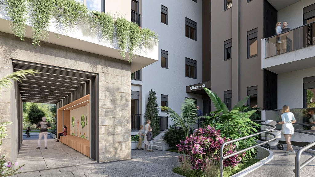 Fasada Oasis Residence kompleksa odlikuje se savremenim i čistim dizajnom, uz pažljivo odabrane materijale koji obezbjeđuju trajnost, energetsku efikasnost i bezvremenski vizuelni identitet.